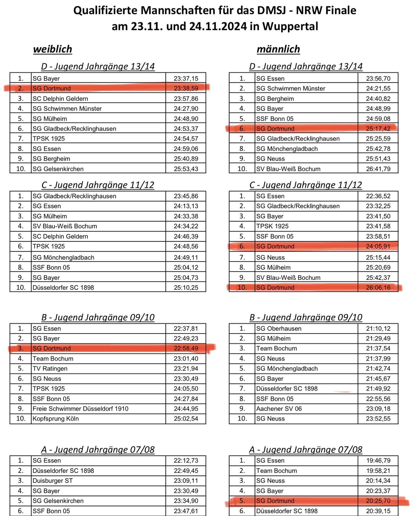 Auf nach, äh, zurück nach Wuppertal geht es am übernächsten Wochenende für unsere Mädels der D- und B-Jugend, die sich als NRW-Siegerinnen für das DMSJ-Bundesfinale qualifiziert haben. Auch unsere Jungs aus der C-Jugend sind qualifiziert!