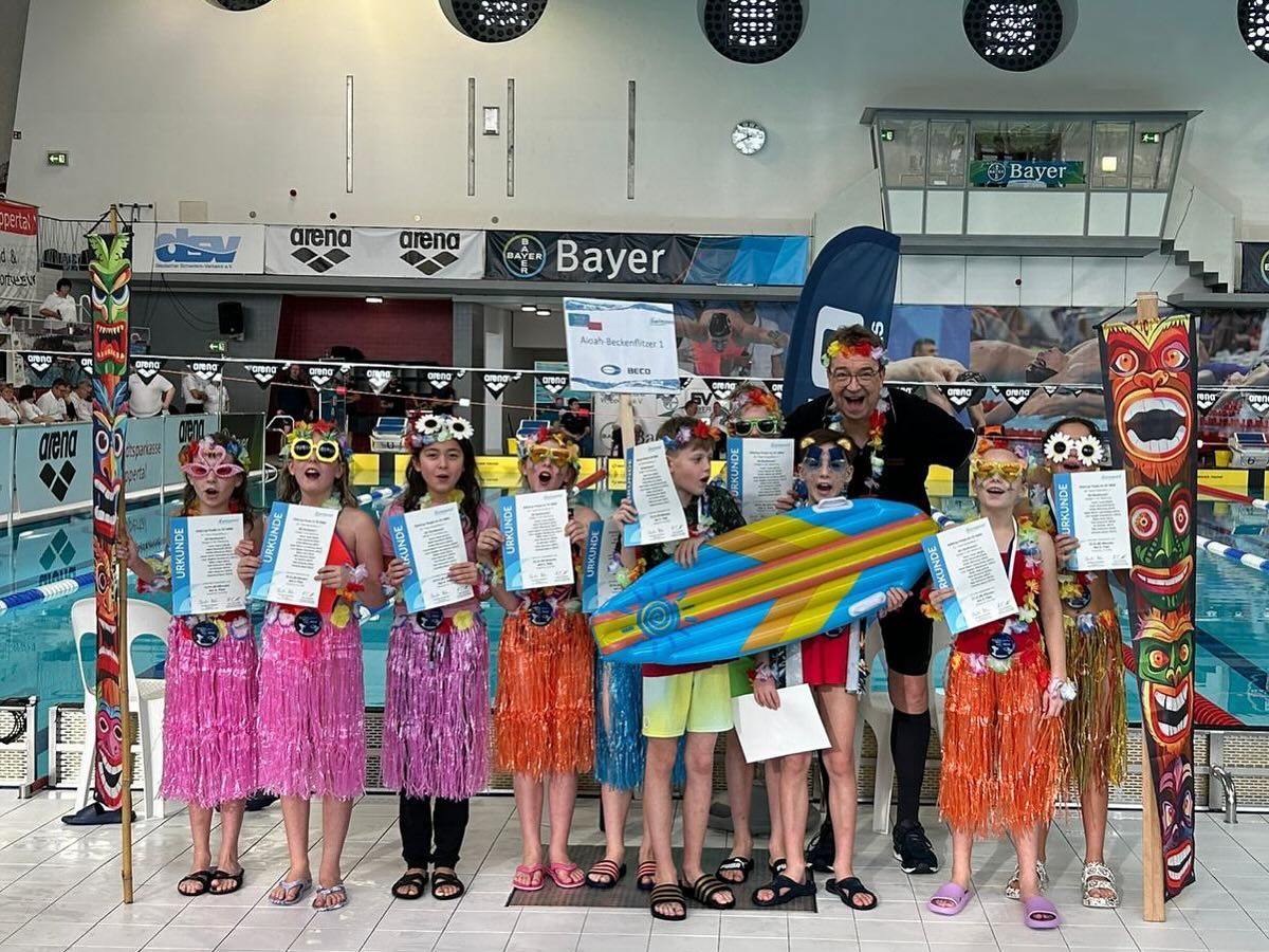 Aloha-Feeling in Wuppertal! Die beiden Teams der SG Dortmund, die Aloha-Beckenflitzer Team 1 und Team 2, sicherten sich im KidsCup-Finale 2024 den 6. und 12. Platz.