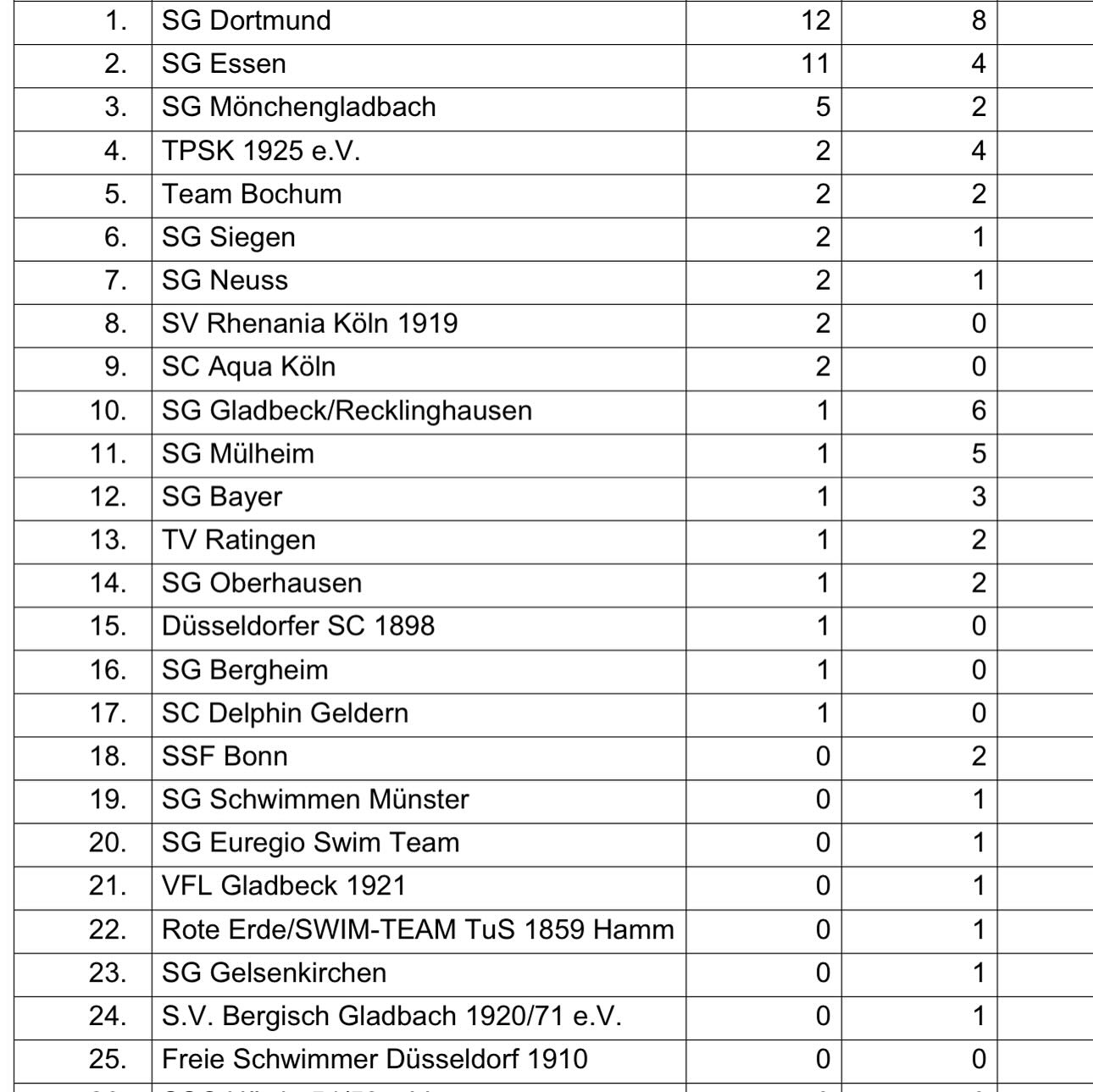 Die Leistungen der Dortmunderinnen und Dortmunder stimmt nicht nur in der Relation ihrer Jahrgänge: Sydney Savannah Ferch führt mit ihren Leistungen auch die offene Klasse an, dicht gefolgt von den anderen Dortmunder Schwimmerinnen - was für eine tolle Leistung!