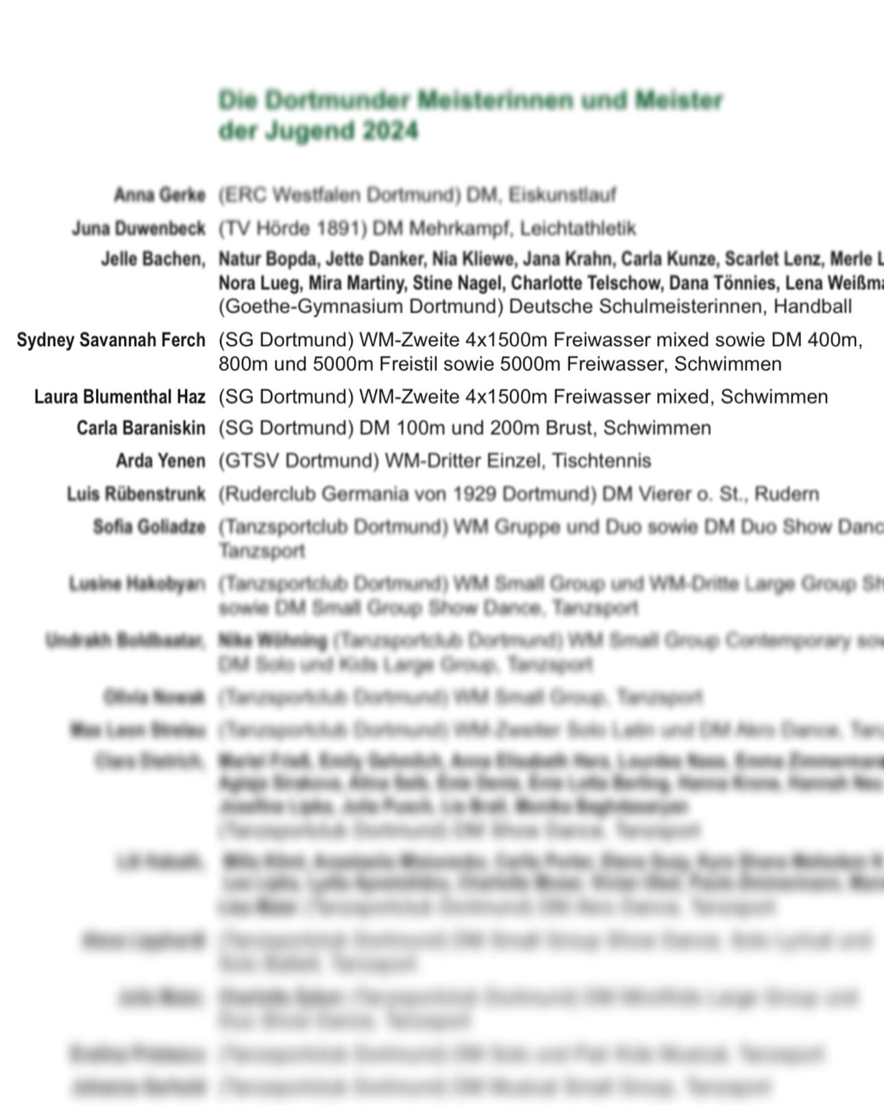 Die Dortmunder Meisterinnen und Meister der Jugend 2024 wurden am vergangenen Wochenende im Rahmen des Fests des Dortmunder Sports U16 gefeiert.