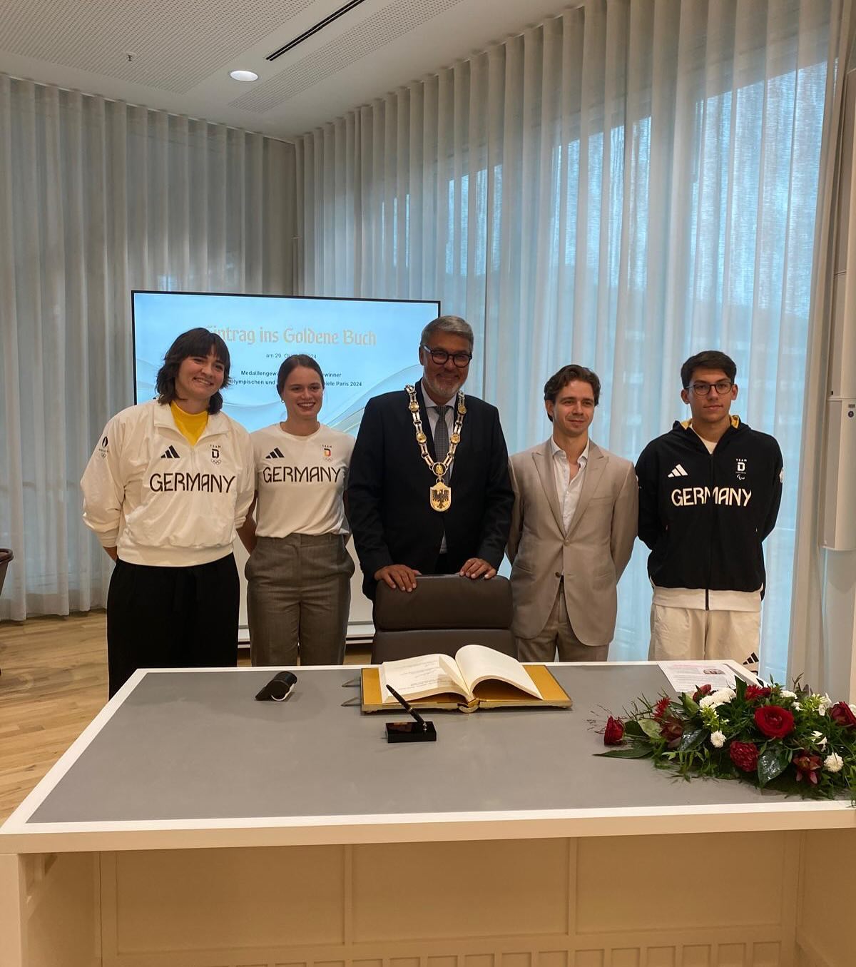 Die dortmunder Medaillengewinner der olympischen und paralympischen Spiele in Paris 2024 durften sich auf Einladung von Oberbürgermeister Thomas Westphal in das goldene Buch der Stadt Dortmund eintragen.