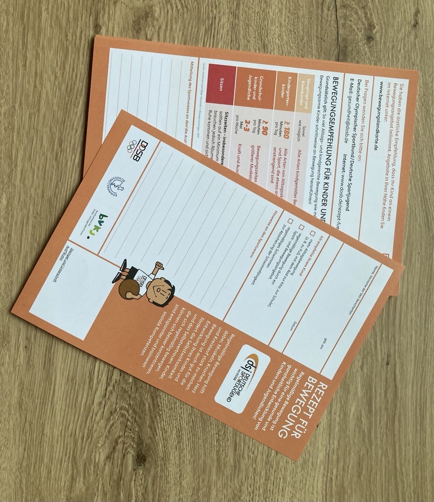 Mit dem neuen „Rezept für Bewegung“ ist es Kinder- und Jugendärzt*innen möglich, beispielsweise im Rahmen der U-Untersuchungen oder der Jugenduntersuchungen konkreter auf das Thema körperliche Aktivität, Bewegung und Sport einzugehen und individuelle Bewegungsempfehlungen auszusprechen (s. Rezept). Auch wenn das Rezept nicht von den Krankenkassen übernommen wird, kann es entscheidend zur Förderung körperlicher Aktivität beitragen.
