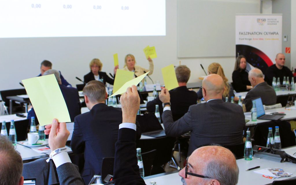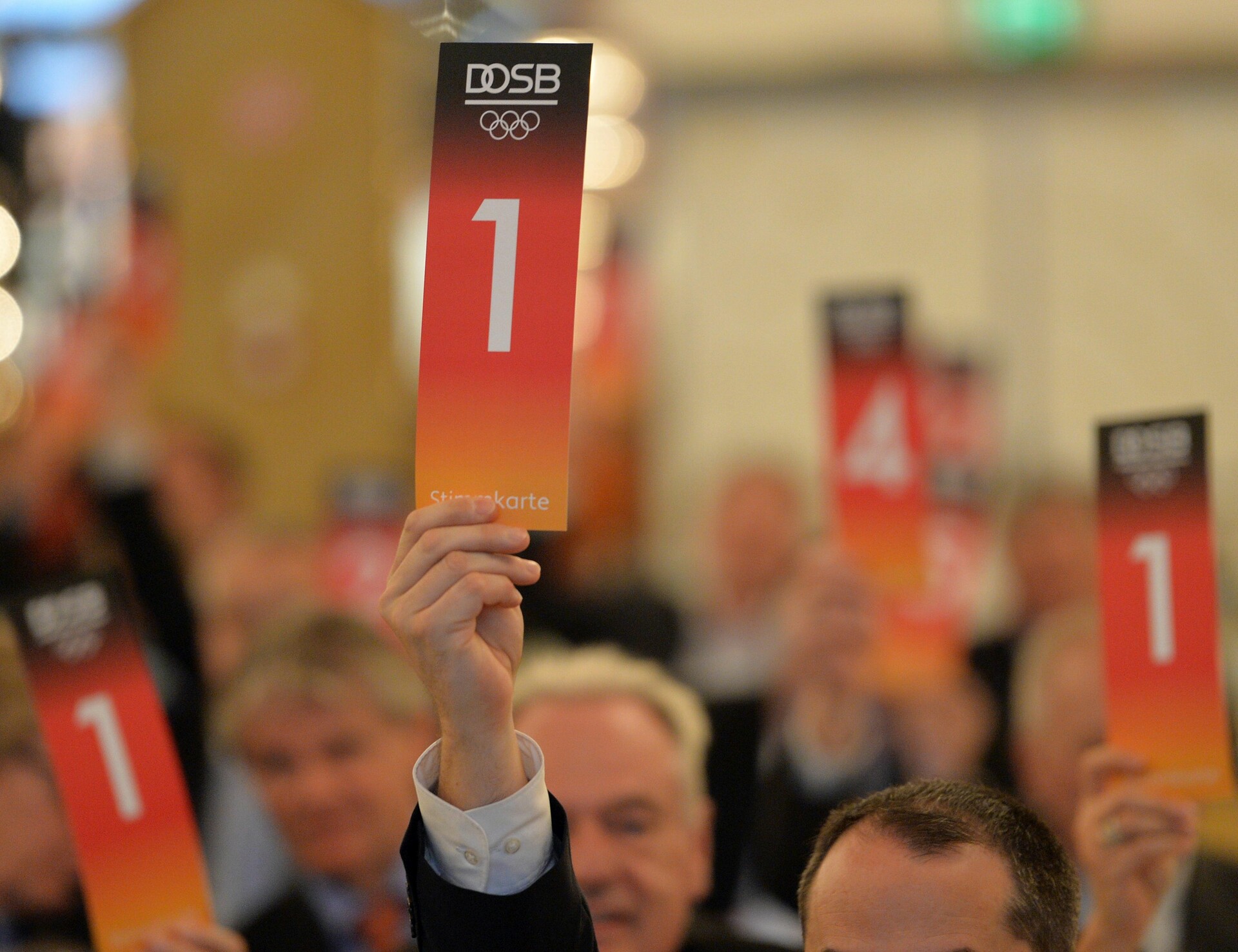 Die Delegierten der 101 Mitgliedsorganisationen, die deutschen IOC-Mitglieder, die Persönlichen Mitglieder, die Mitglieder des Präsidiums sowie ein weiteres Mitglied der Athletenkommission neben dem*der Athletenvertreter*in im Präsidium mit Stimmrecht. So kommen maximal 539 Stimmen zustande, die sich auf mindestens 180 Delegierte verteilen.