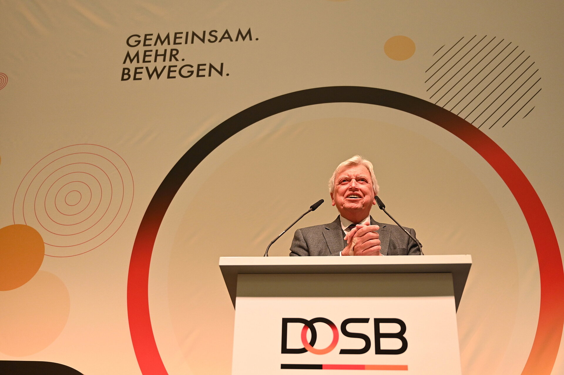 Warum ihm der Sport immer wichtig war? „Weil ich davon überzeugt bin, dass Sport die größte Ressource ist, die unsere Gesellschaft hat. Sport erreicht alle Schichten, er ist klassenlos, rassenlos und absolut konkurrenzlos, wenn es um das wichtige Thema Integration geht. Das ist bis heute meine Philosophie und der wichtigste Grund, warum ich mich nun auch im DOSB engagiere“, sagt Volker Bouffier, seit 2018 Träger des Großen Bundesverdienstkreuzes und 2023 für herausragende Verdienste um die Förderung und Entwicklung des Sports mit der Ehrenmedaille des DOSB ausgezeichnet. Er habe zwar noch nie Sportpolitik betrieben, „aber in all meinen Ämtern immer Politik für den Sport gemacht.“ Die tägliche Sportstunde zum Beispiel, die hat er schon vor 25 Jahren gefordert - und wurde dafür ausgelacht.